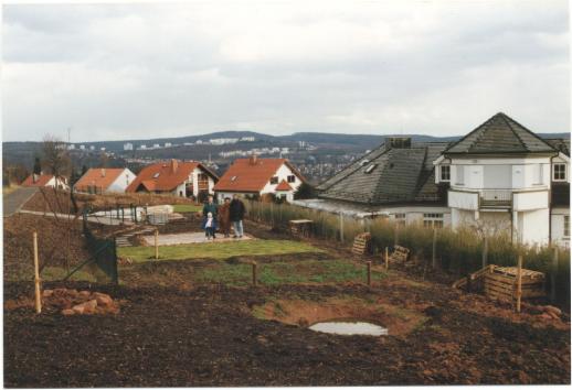 Schnell fanden sich 19 Pächterinnen und Pächter, die Verträge mit dem KGV Marburg unterzeichneten, um dann Anfang 1992 mit dem Aufbau der Anlage und der Anlegung der Gärten zu beginnen. Was sie zu diesem Zeitpunkt vorfanden, war ein rotbrauner Acker mit Wegen. Was sich aber am Anfang des Jahres noch als wüst darstellte, wurde mit viel Elan in eine vielfältige Gartenlandschaft umgewandelt. Nach und nach wurden auch die Lauben errichtet, sei es als Eigenkonstruktion oder im gekauften Bausatz.